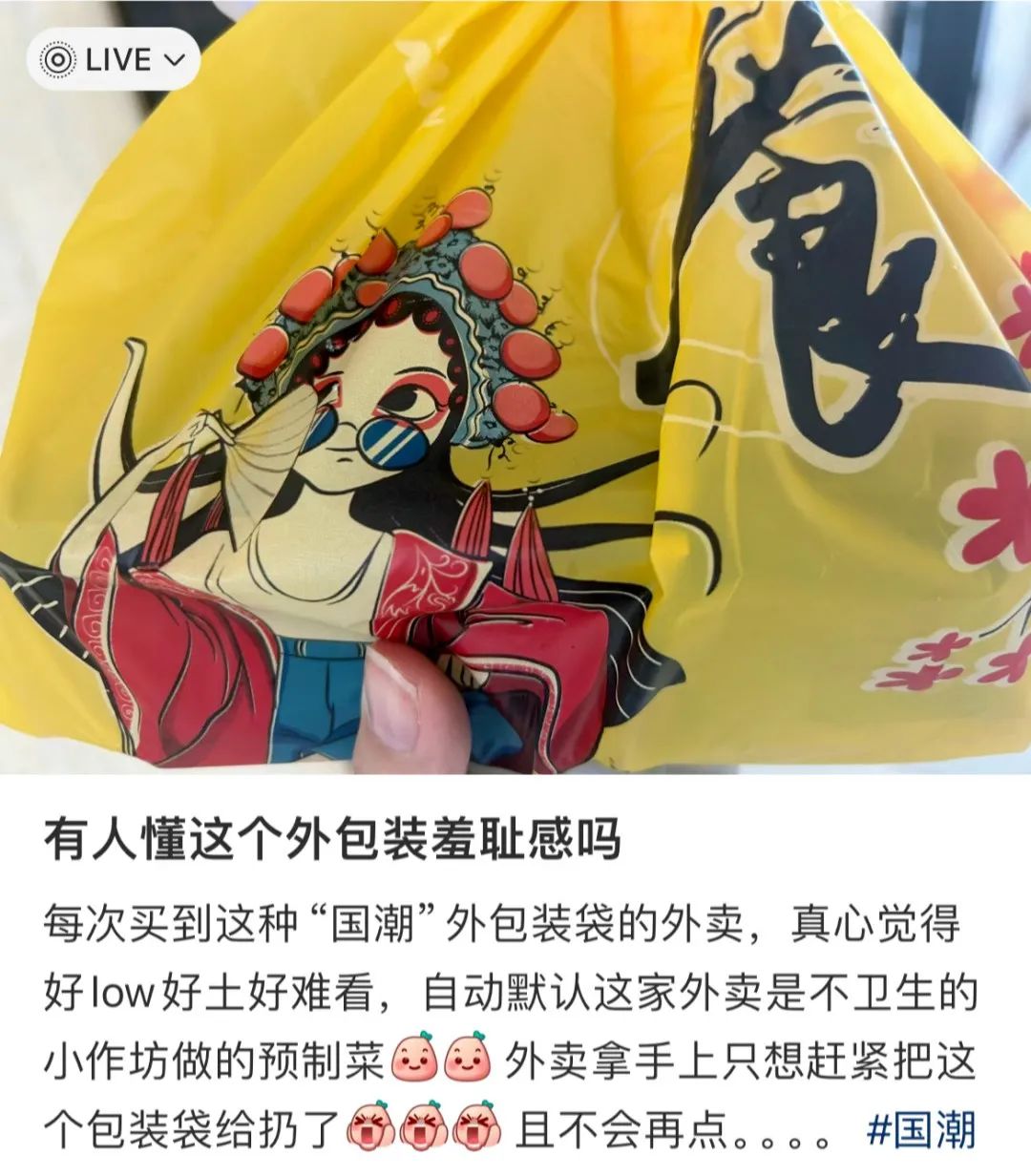 京剧,少女,墨镜,折扇,中间还有一个大“潮”字,用印有这些元素组合的包装袋外卖,你点到了吗?
