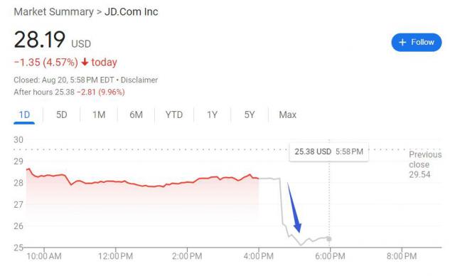 8 月 20 周二美股盘后,在美上市中交所京东盘后暴跌,跌幅一度超过。 10%。