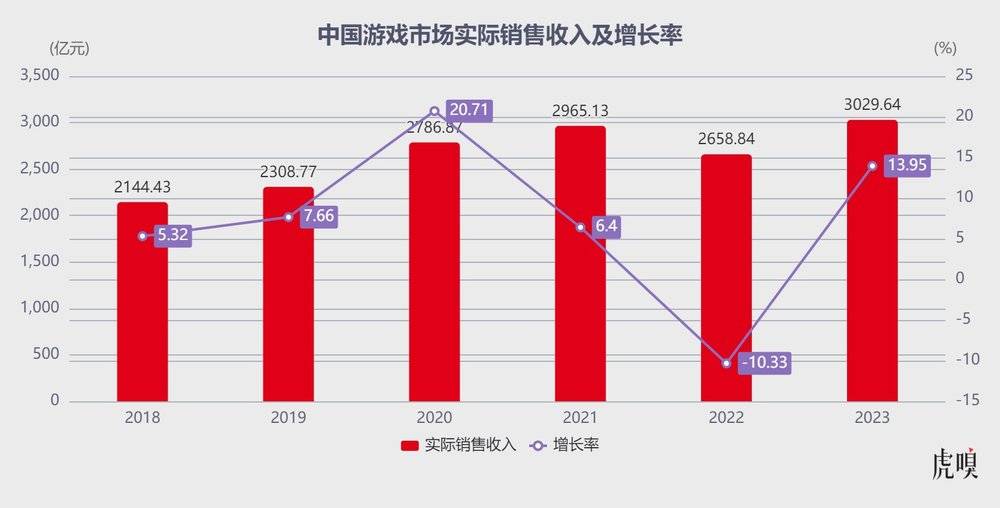 就产业层面而言,2023 年中国游戏产业实际销售收入同比增长 13.95% 达 3029.64 第一次突破亿元 3000 亿关口是世界上最大的单一游戏行业——但中国单机游戏市场(包括主机硬件收入)勉强超过。 20 一亿美元的门槛,仍然处于“爆发前夜”。