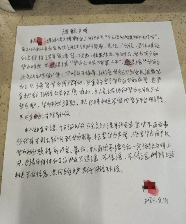 在微博平台上,我自己的账号“今天你的智慧 play 了吗",自 2022 多年来,侮辱、攻击、抹黑华为、华为产品、华为用户和华为粉丝,多次使用侮辱、庸俗、庸俗、丑化属性的言语。并传言“华为集团买水军黑小米”、谣言“华为企业文化就是偷”;同时,公开侮辱、诽谤华为高管、诽谤华为集团、侮辱华为用户,严重损害了华为的声誉,严重扰乱了网络社会秩序。本人真诚地向华为集团、广大华为用户、华为粉丝道歉。在这里,我真诚地向华为集团、华为用户和华为粉丝道歉。我已经删除了所有关于虚假内容的平台,并尽最大努力消除影响。