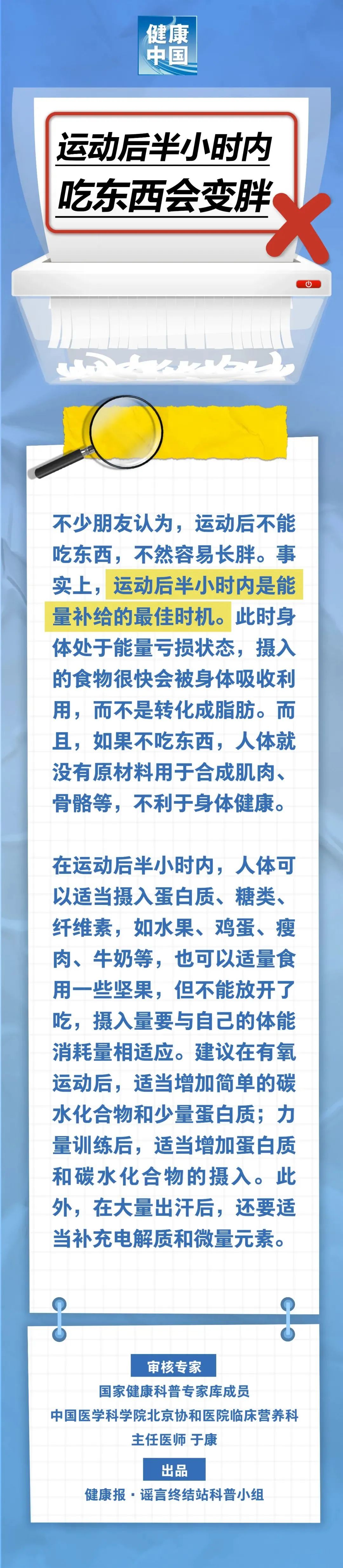运动后半小时内吃东西会不会长胖?滚下图看答案↓(来源:健康中国)