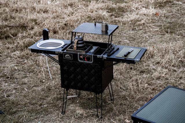 该产品名称 Kitchen Cruiser ,它可以在几秒钟内从一个干净的便携式盒子变成一个功能齐全的露营厨房,体积小但神奇,可以考虑储存、准备、烹饪和清洁,甚至包括炉子、水槽等设施。铝制正方体是一种创新的正方体,Kitchen Cruiser 它看起来有点像一个冷藏箱,大小基本相同。盒子由太空级铝制成。完全折叠后,总宽度不超过两英尺,但打开后,总宽度几乎翻倍。