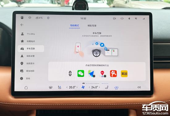 2024 款问界新 M7 Ultra 配备高德地图汽车版,导航界面非常简单。常用的目的地检索和快捷导航功能按钮位于屏幕左上角,方便驾驶员操作。值得一提的是,客户还可以向汽车发送微信、高德地图手机版、美团等使用的地址,方便用户快速启动导航,非常实用。