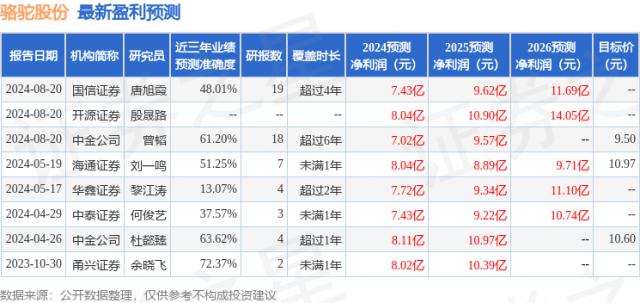 根据近三年发布的研究报告数据,证券之星数据中心对永兴证券余晓飞的研究团队进行了深入的研究,近三年的预测准确度均为 预测72.37% 2024 年度归属净利润为利润 8.02 十亿,根据现价转换预测。 PE 为 10.41。
