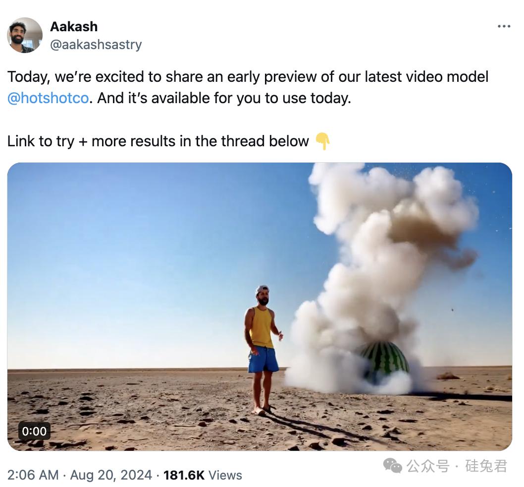 刚刚,美国AI企业Hotshot发布了其视频模型的初期预览版本。——Hotshot,整个OpenAI只用四个人就完成了。Sora"团队工作量。