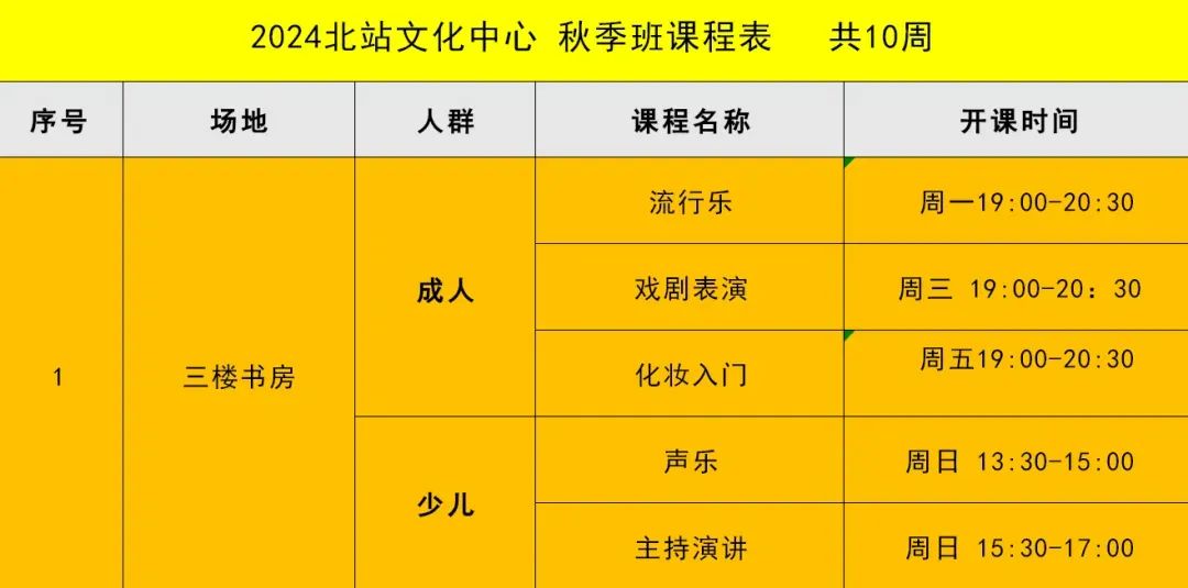 近日,北站街道文化中心“美育课堂”秋季班启动报名,将提供13门艺术课程,并在原有8门艺术课程的基础上增加5门特色课程——儿童演讲与主持、儿童声乐介绍、儿童创意绘画、儿童硬笔、儿童DIY科学实验。让白领下班后和孩子一起感受高质量的文化艺术。