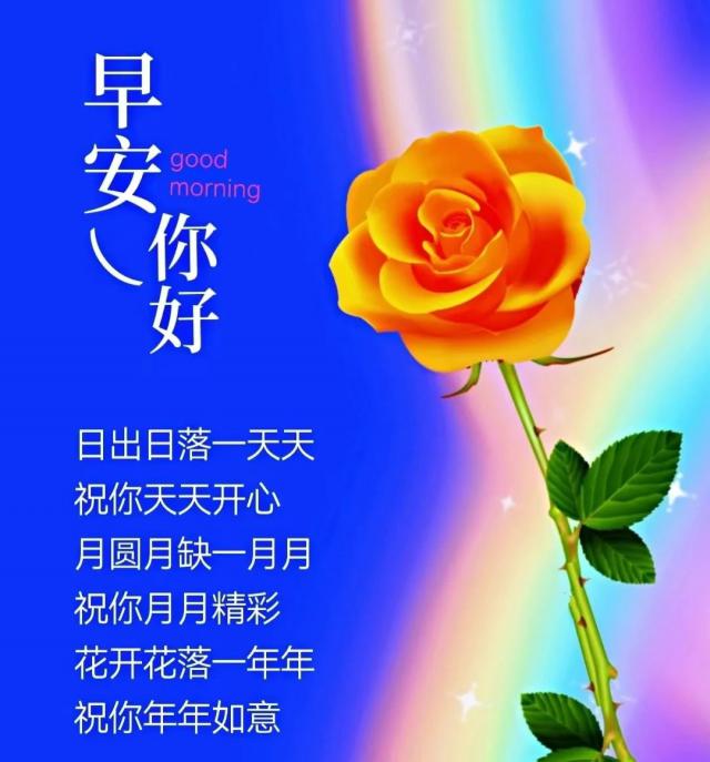 愿你天天开心,钱滚滚而来,经常享受美食,人气稳定。五福临门庆,宝藏纷纷进入,五颜六色的梦想很多。每个人都尊重你,扬威天下,一生平安幸福。早上好!