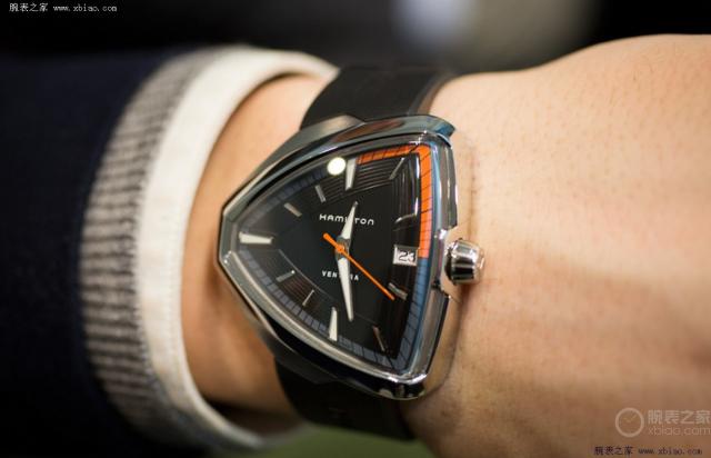 另一种美式文化在汉米尔顿的表现就是明星效应。VENTURA 冒险系列又称“猫王表”,起源于50年代,以其独特的三角形表壳而闻名。早期产品采用电能机芯,是世界上第一批可更换电池的手表。与石英机芯的运行原理不同,这种独特的机芯具有减震器、游丝、摆陀结构,与机械机芯相似。它象征着同一时期的趋势和技术,VENTURA 冒险手表被“猫王”埃尔维斯 · 普雷斯利(Elvis Presley)的喜爱。电影《蓝色夏威夷》中猫王曾在电影《蓝色夏威夷(Blue Hawaii)》多次佩戴这款手表,给观众留下了深刻的印象。为了纪念这个起源,汉米尔顿曾经在猫王诞辰。 70、75、80 在周年纪念日,推出相应的 Ventura 手表特别版本。