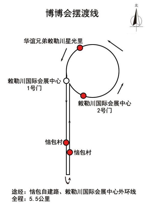 博览会摆渡线(勒川国际会展中心-勒川国际会展中心)运营时间:勒川国际会展中心9时发放第一班车,勒川国际会展中心18时发放最后一班车,免费。