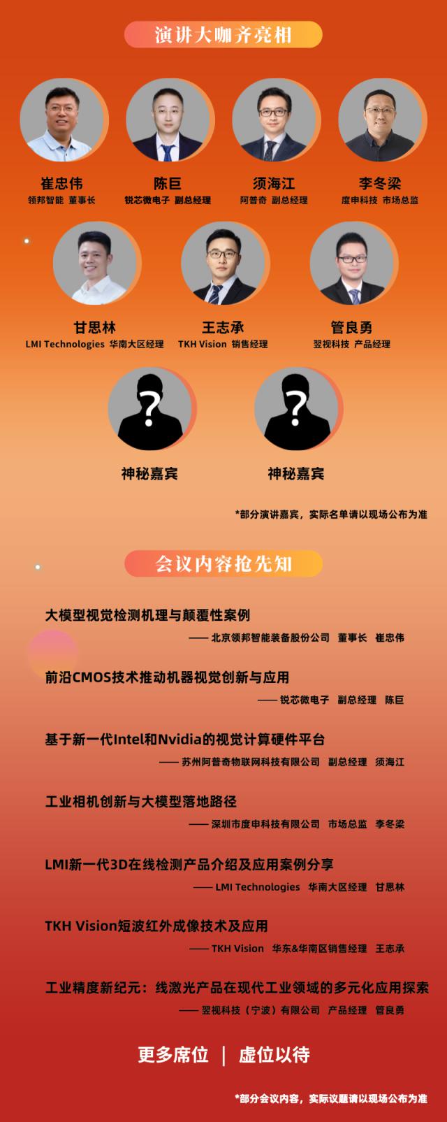VisionChina2024(深圳)机器视觉研讨会精心准备了两个论坛,主论坛汇集了领邦智能、锐芯微电子、阿普奇、度申科技,LMI Technologies、TKH Vision、二视科技等众多行业的大咖,在机器视觉领域有着深厚的积累和丰富的经验,以主论坛为中心。AI 大型、工业相机、显像技术术等核心话题进行交流和讨论,代表了机器视觉技术的最新发展方向和前沿研究成果。分论坛更侧重于分论坛。电子,半导体其他具体应用领域,旨在探讨机器视觉技术如何为这些行业的发展提供有力支持。