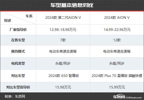 2024 款第二代 AION V 共推出 7 与老款车型相比,汽车的起步价降低了 2.01 一万元,价格更贴近百姓,但与老款车型相比,推出的少。 5 款。值得注意的是,第二代 AION V 仍然使用汽车命名方面仍然使用 2024 款式命名,与老款车型差距较小,消费者在购买时要注意。为了更直观地比较,我们选择了两款价格相近的车型进行比较,两者的差价只是差价。 100 元,能更直观地看到新旧车型在配置上的具体差异。