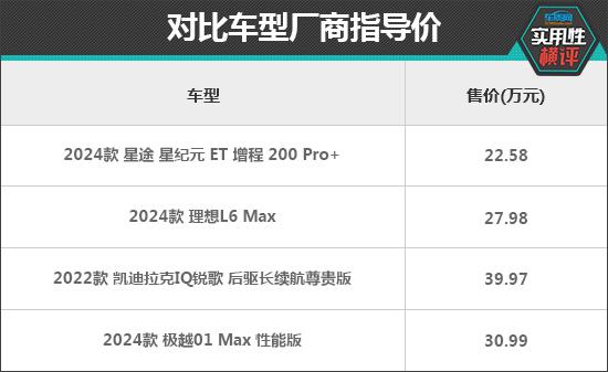 中大型新能源 SUV 已成为许多家庭的首选,动力充足,空间大,汽车使用成本低,这些优点使汽车更容易使用。在之前的《日常实用测试报告》中,我们对各种新能源中的大型新能源进行了测试 SUV。今日,我们从中挑选了包括星途星纪元在内的几款中高端车型 ET(以下简称星纪元 ET)、理想 L6、上汽通用凯迪拉克 IQ 锐歌(以下简称 IQ 锐歌)、极越 01。通过详细的对比,可以看出哪一款车型在实用性方面更为突出。