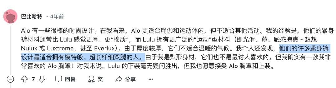Alo的消费群体也受到影响。在社会媒体上,吐槽Alo价格昂贵、质量差的帖子占据了相当多的品牌相关信息,「运动装不适合运动,只能在日常生活中穿着。」这是当前新兴运动品牌普遍存在的问题。