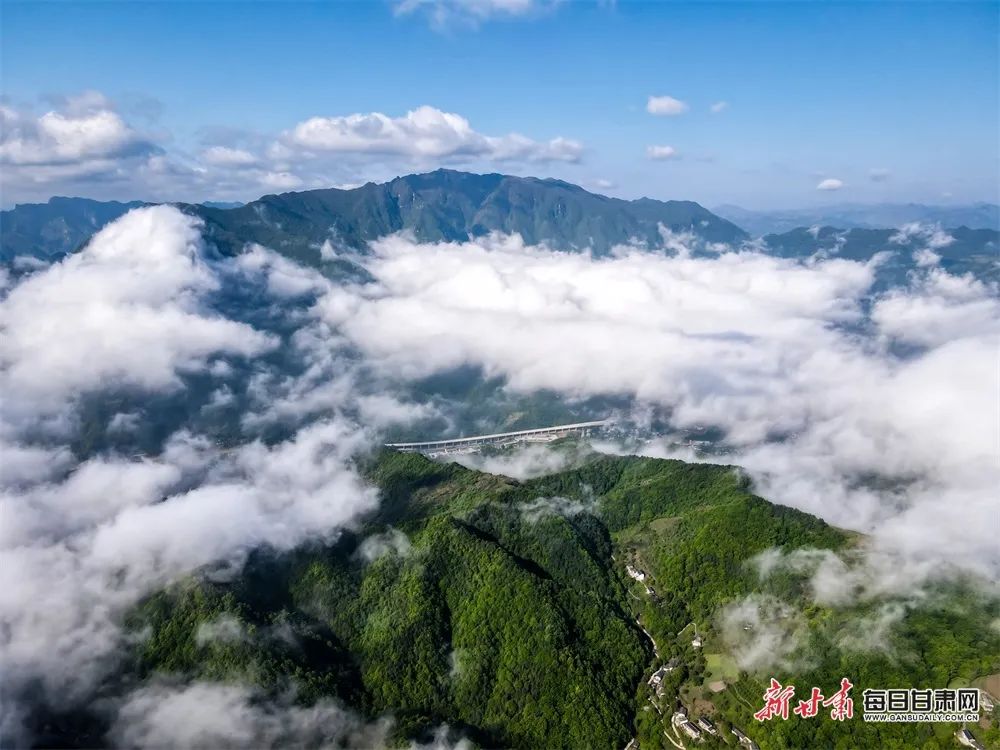 陇南市武都区米仓山境内云雾缭绕,宛如仙境。