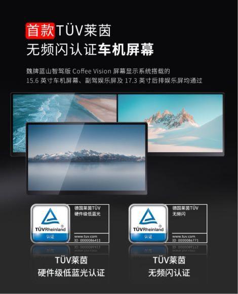拥有全新的蓝山主驾 12.3 英尺仪表和 29 英尺超大 SR-HUD,可以显示更大更清晰的汽车信息,告别视觉盲点,准确恢复外部汽车信息;中控和副驾驶配备了 15.6 英尺 2.5K 超高清双屏,屏幕选用屏幕选用 7mm 超窄边框,9.5mm 超薄型飘浮设计,是行业量产最薄的 LCD;第二排和第三排乘客拥有同级别最大的乘客。 17.3 英尺 3K 支持超高清娱乐屏幕 Coffee Air Touch 手势微动操纵,随时随地与家人分享快乐。其中,超高清中控屏、副驾驶双屏、后娱乐屏均获得莱茵硬件级低蓝光、无频闪双认证,可有效改善低亮频闪光引起的视疲劳,保护眼睛,健康使用眼睛。