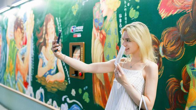 随着暑假的临近,沪上楼商圈出现了一个令人好奇的“成人假期作业”。近日,浦东陆家嘴地铁站行人通道增加了一块巨大的“黑板”。黑板上的孩子天真无邪,要么捧着西瓜,要么和猫互动。旁边有一个互动装置。当路人按下红色按钮时,机器会“吐出”一张类似明信片的“盲盒作业纸”。作业纸上写着:去“贴”游泳池里的波浪,去“贴”浪漫的中国传统文化…