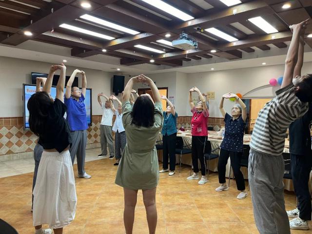 参观了三福学院的硬件设施后,工作人员还为参加开放月活动的市民准备了三福学院特色的文化娱乐体验项目。大家一起做手工,玩八段锦,和机器人下棋,很开心。在体验活动现场,工作人员还邀请住在三福学院的老人一起享受,利用自己的亲身经历,让参与者对三福学院的养老生活有更深的感受。