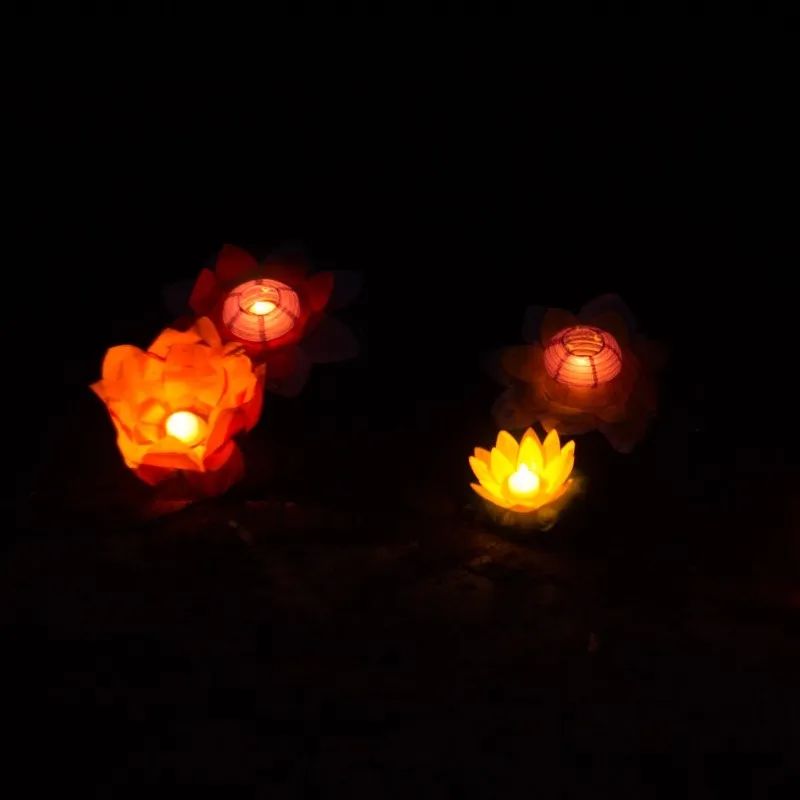 河灯又称“荷花灯”,一般在中元夜放入江河湖泊中,任其漂浮,寄托着大家祈求平安的美好愿望。