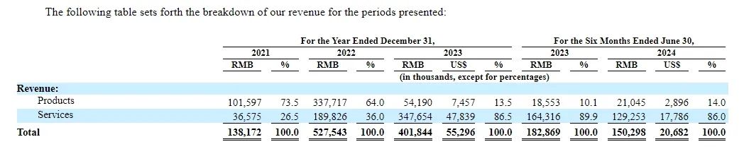 换言之,不管是产品业务带来的收入额度还是比例,2023年都出现了直线下降。