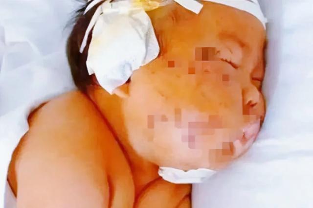刚开始只是因为喝奶太用力,就被妈妈用剪刀划成了“大脸猫”的宝宝,现在怎么样了?