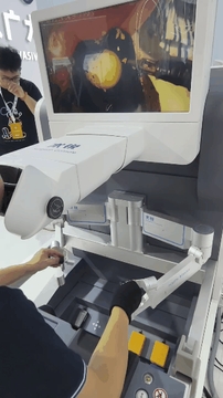 在展会上,「术锐」现场展示也很有意思,把一个熟鹌鹑蛋放在假人肚子里,让工作人员远程控制剥壳。