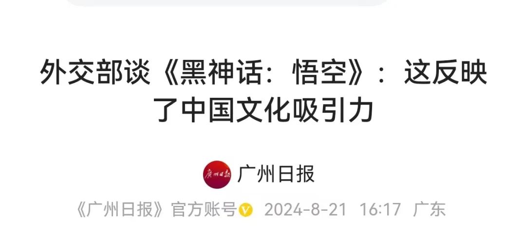 这个游戏甚至受到了央视财经、四川观察等多家媒体的关注。甚至外交部也称赞了《黑神话:悟空》,据说这款游戏取材于中国古典文学名为《西游记》,体现了中国文化的吸引力。