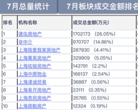 另外,根据“兔博士APP”提供的上海二手房交易额度统计,上海链家(即下表中德佑)的市场份额达到26.05%。