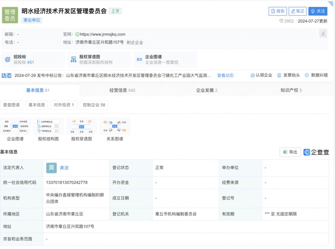 回到苏黎士基金的执行目标,疑似申请执行人是:明水经济技术开发区管理委员会(以下简称明水委员会)。天空调查显示,明水委员会是事业单位,属于中央直接管理机构编制的群众群体。苏黎士基金这次踢“铁板”了吗?