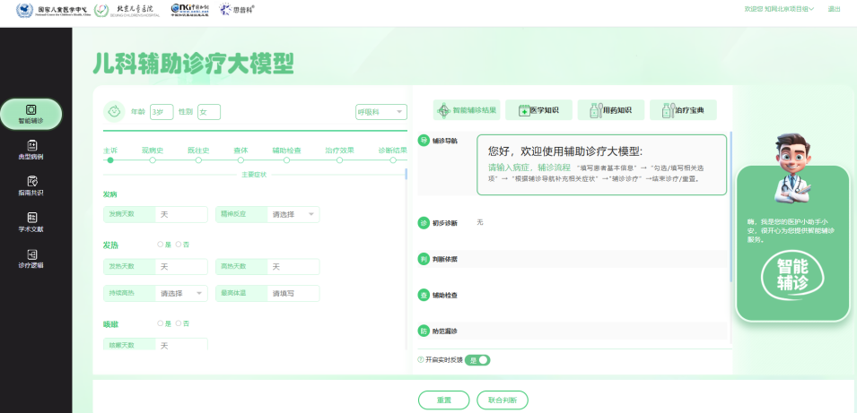 付海强表示,儿科辅助诊疗大模型可供选择。「智能辅诊」「医学院校教学」「规范医师培训」「医生的日常学习」等待应用。通过辅助诊疗、典型病例引导问答、病例辅助解读等功能,可以大大提高疾病的诊断效率和准确性。