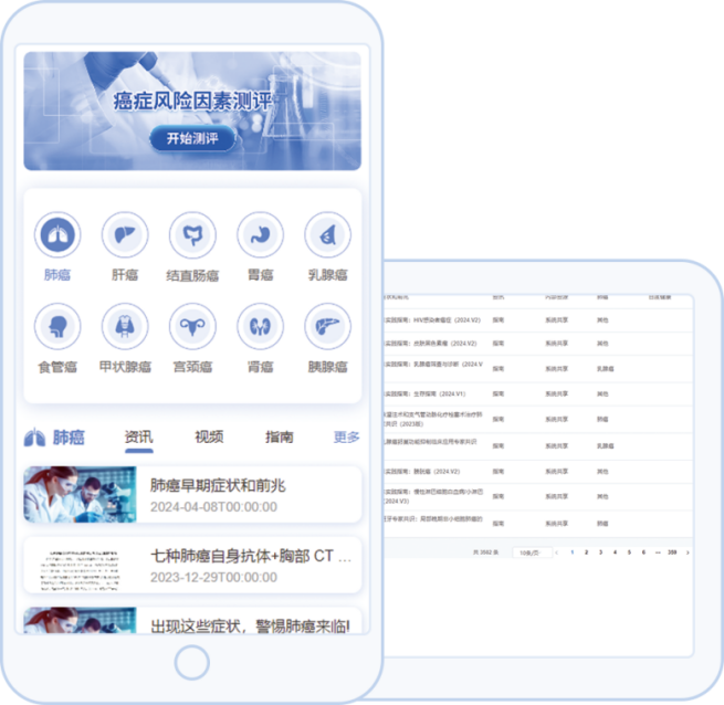 所以,中国知网开发了「数智化平台肿瘤防治」,坚持预防为主,关口向前移动,通过移动应用与平台联动,完善癌症预防、高危人群筛查到早期发现、全流程随访的预防和控制体系。基于先进的信息技术和能力,如海量医学数据、数据加工技术、知识图谱、医学领域大模型等,「数智化平台肿瘤防治」可以帮助医疗机构实现医院工作的动态管理,提高肿瘤筛查、确诊、报告、登记、治疗、转诊、跟踪、随访等一系列工作流程,从而建立集预防、治疗、康复为一体的肿瘤疾病健康管理体系。逐步实现肿瘤疾病管理的规范化、精细化、信息化。
