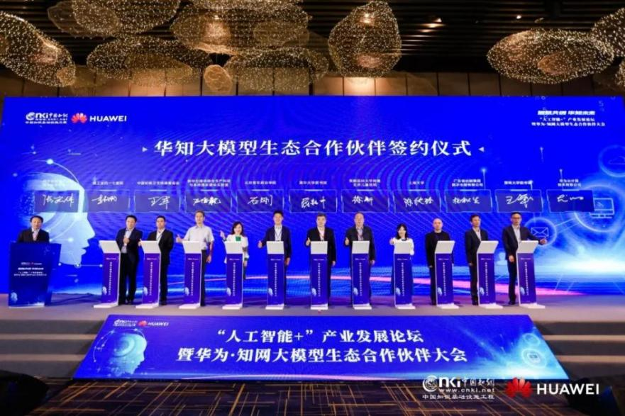 在「人工智能 」在产业发展论坛暨华为知网大模型生态合作伙伴会议上,举行了「华知大模型生态合作伙伴计划」第一批合作伙伴签约仪式