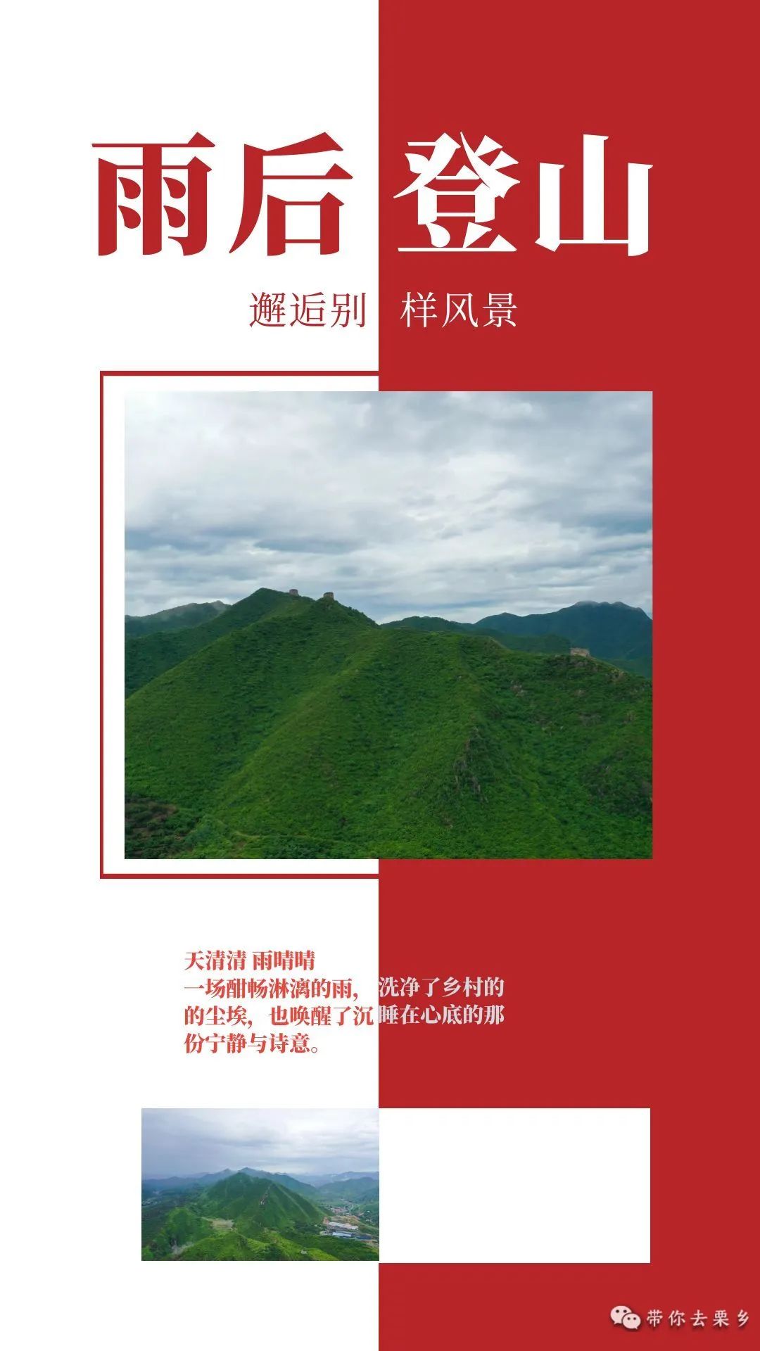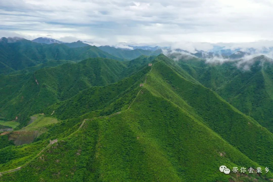 远处的长城笼罩在薄薄的雾气中,若隐若现,宛如一幅水墨画。经过雨水的洗礼,山上的树木越来越绿,绿叶在微风中轻轻摇曳,仿佛在诉说着雨后的喜悦。