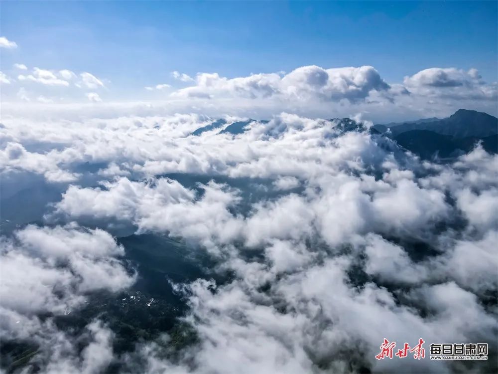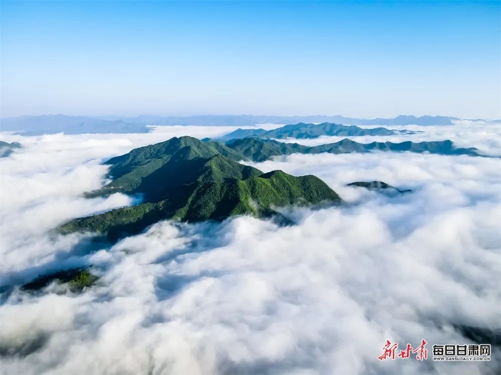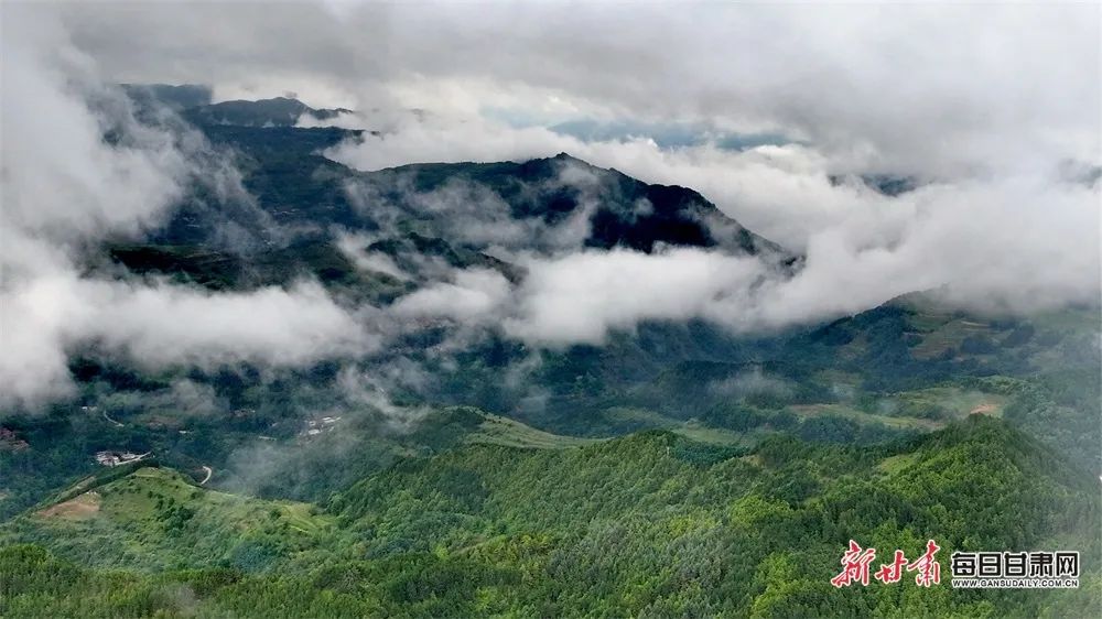 陇南市武都区米仓山境内云雾缭绕,宛如仙境。