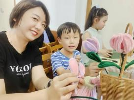 在月浦五村居委会,在亲子家庭的共同努力下,五颜六色的郁金香花篮逐渐成型,每个人的成就感和幸福感溢于言表。这项活动不仅是一种简单的手工制作体验,也是精神交流和成长的见证。