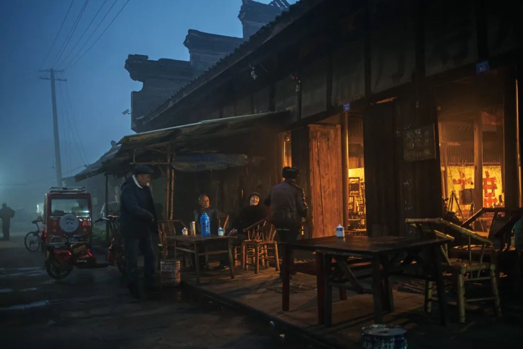 2018 2008年11月27日,四川成都彭镇。早晨雾蒙蒙,天空微亮,百年茶馆已开门迎客。(图 / 视觉中国)