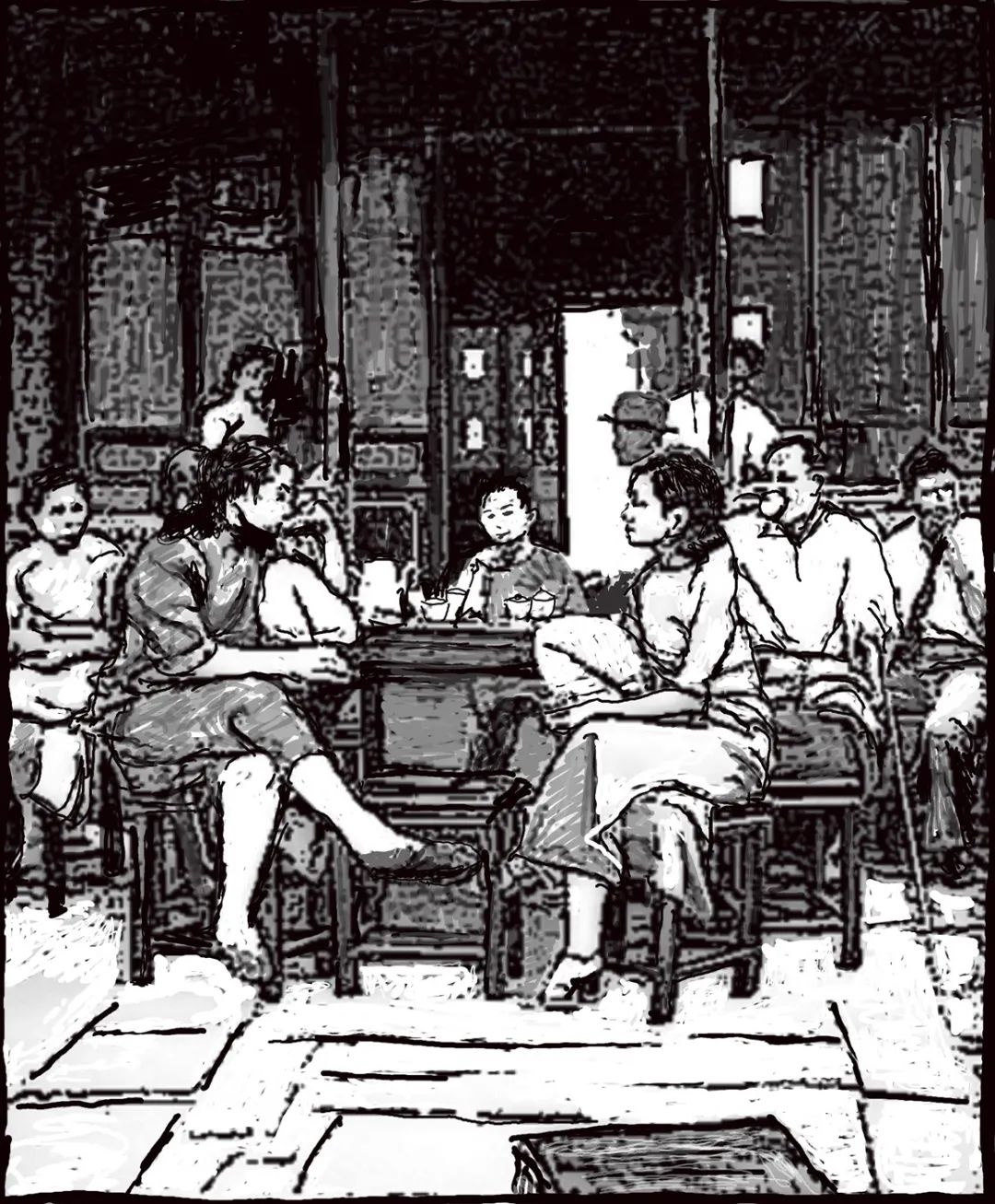 茶客。《那个街角的茶店》插图,王笛绘。(图片 / 由受访者提供)