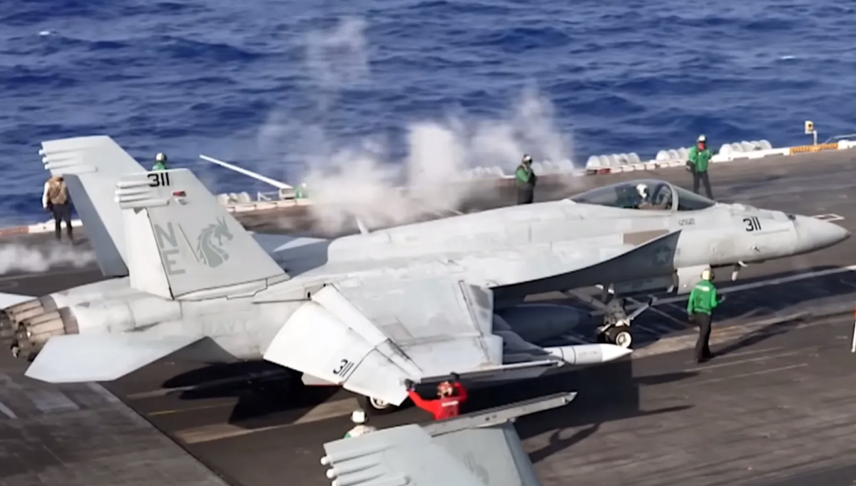 美国航母舰载机携带AIM-174B超远程航空导弹起飞。