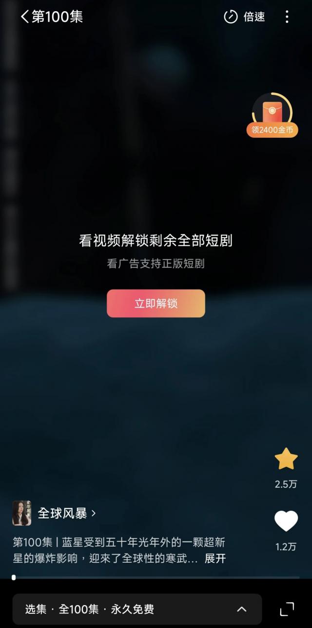 就红果短剧而言, App 所有内容都是免费的,但是有一个条件,你要看广告。