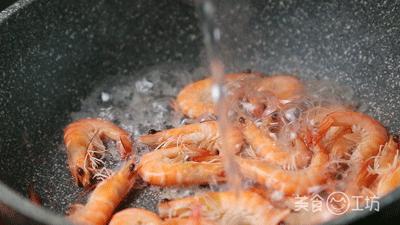 1. 虾洗净挑去虾线,蛤蜊泡水吐出泥沙,用水炒熟。