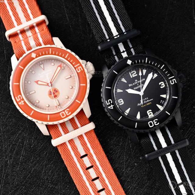 斯沃琪联名超霸(左)和斯沃琪联名 50 噚(右)