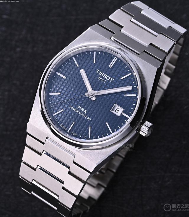 PRX 分为机械机芯版本和石英机芯版本两种,一眼就能识别出来。机械机芯 PRX,盘子是冲压的格子装饰,特别是蓝色的盘子,甚至还有一点皇家橡树的“魅力”;