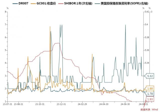 在海外,美国最新的隔夜融资担保利率是 5.32%。