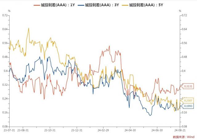 5. 最近城投债(AAA)每个期限的利差走势和数据