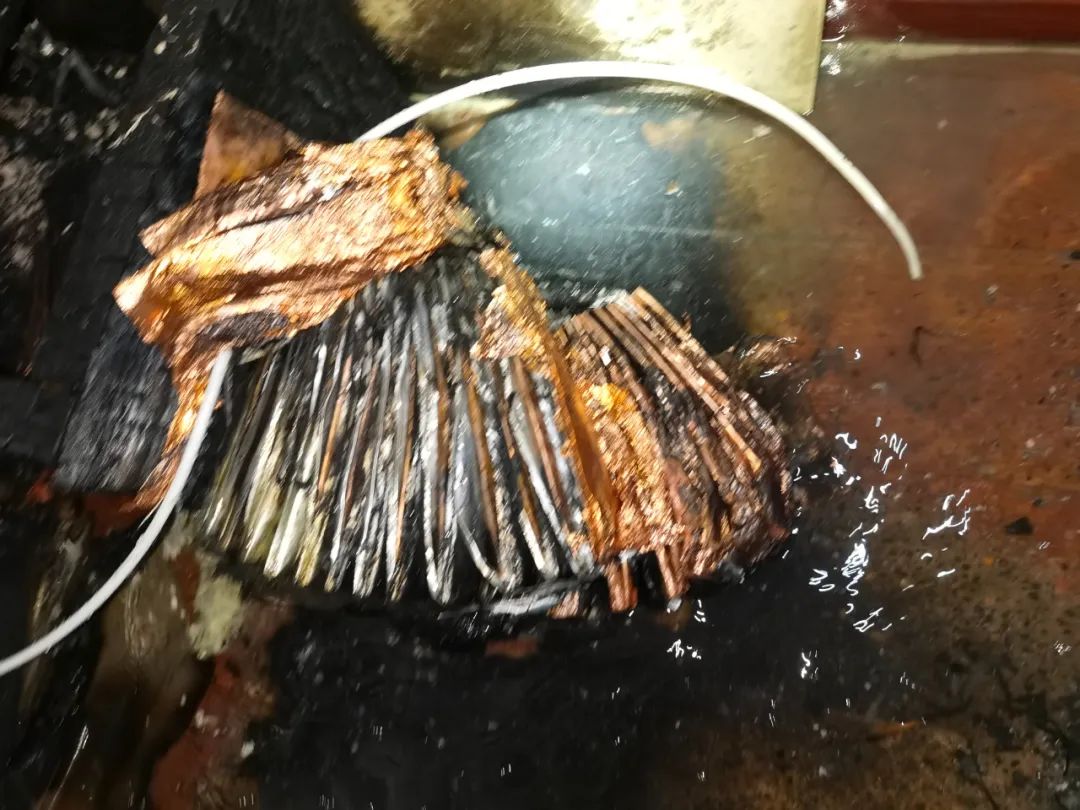 消防队员再次使用水带,不断向锂电池冲水,电池被扑灭,然后将锂电池浸泡在装满水的水桶中。水桶的水面上继续出现气泡,但电池没有再次燃烧,火灾得到有效控制。