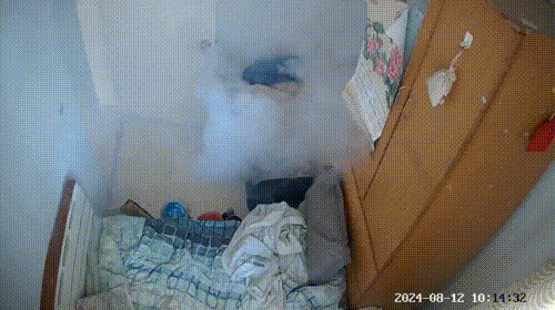 实验选择在一个六平方米左右的房间里进行。床、衣柜等家具放在室内。消防救援人员将电动汽车的锂电池放入房间,用动物身体组织取代人体皮肤靠近电池。