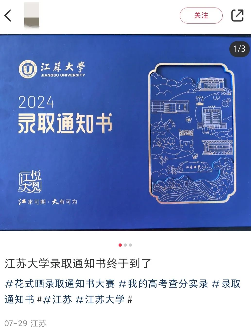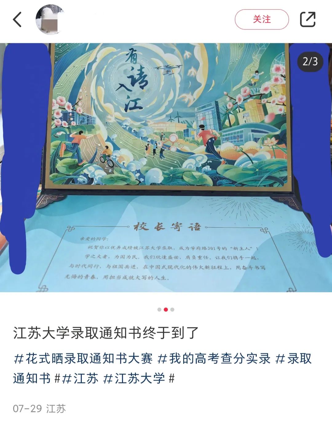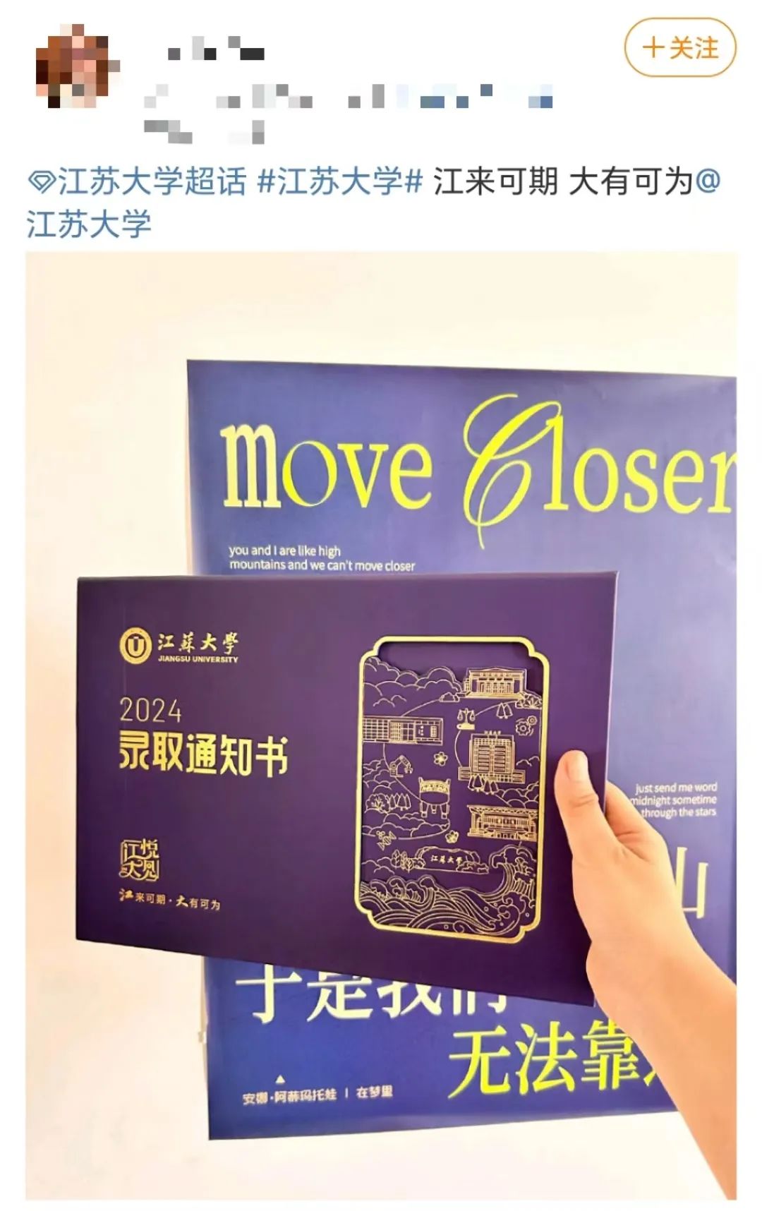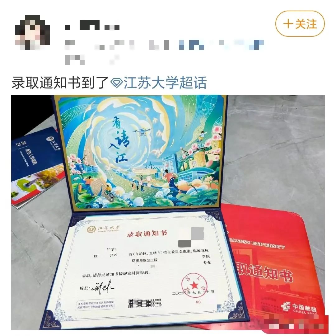 手持江大录取通知书