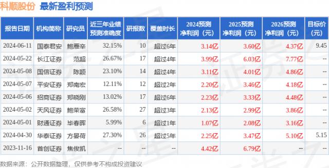 黄诗涛东吴证券有限公司股份有限公司 , 房大磊 , 近日,任婕对科顺股权进行了研究,并发布了《2024》调查报告 年报点评:收入端承压,利润端改善,中期分红率较高。本报告对科顺股权给予了加持评级,目前股价为 4.0 元。