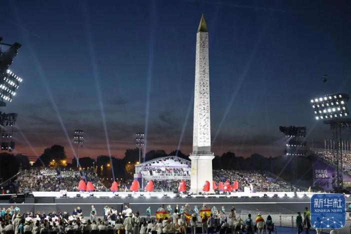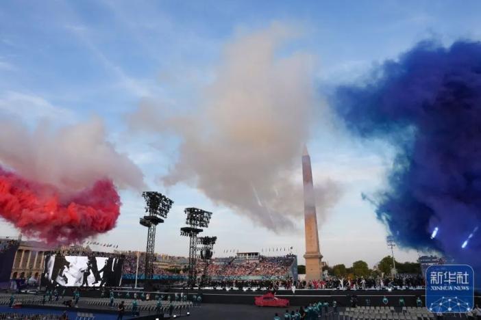↑它是在巴黎协和广场拍摄的开幕式。新华社记者 侯俊 摄