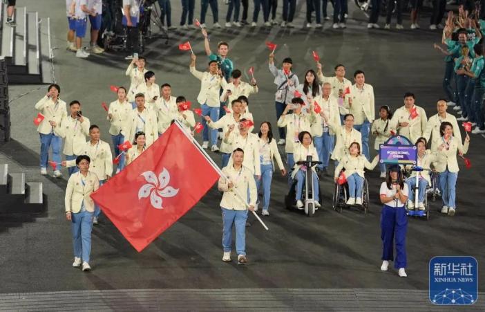↑在开幕式上,中国香港体育代表团进场。新华社记者 侯昭康 摄