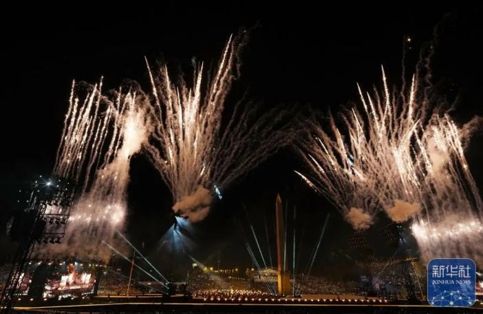 ↑它是在巴黎协和广场拍摄的开幕式。新华社记者 张铖 摄